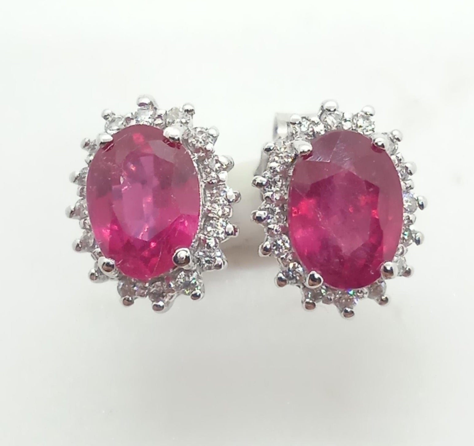 Orecchini - 18 carati Oro bianco Rubino - Diamante