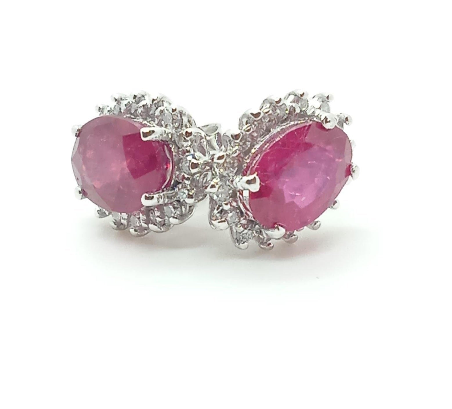 Al centro degli orecchini ci troviamo 2 Rubino glass filled naturale da 0.60 carati cadauno per una caratura stimata di 1.20 carati
