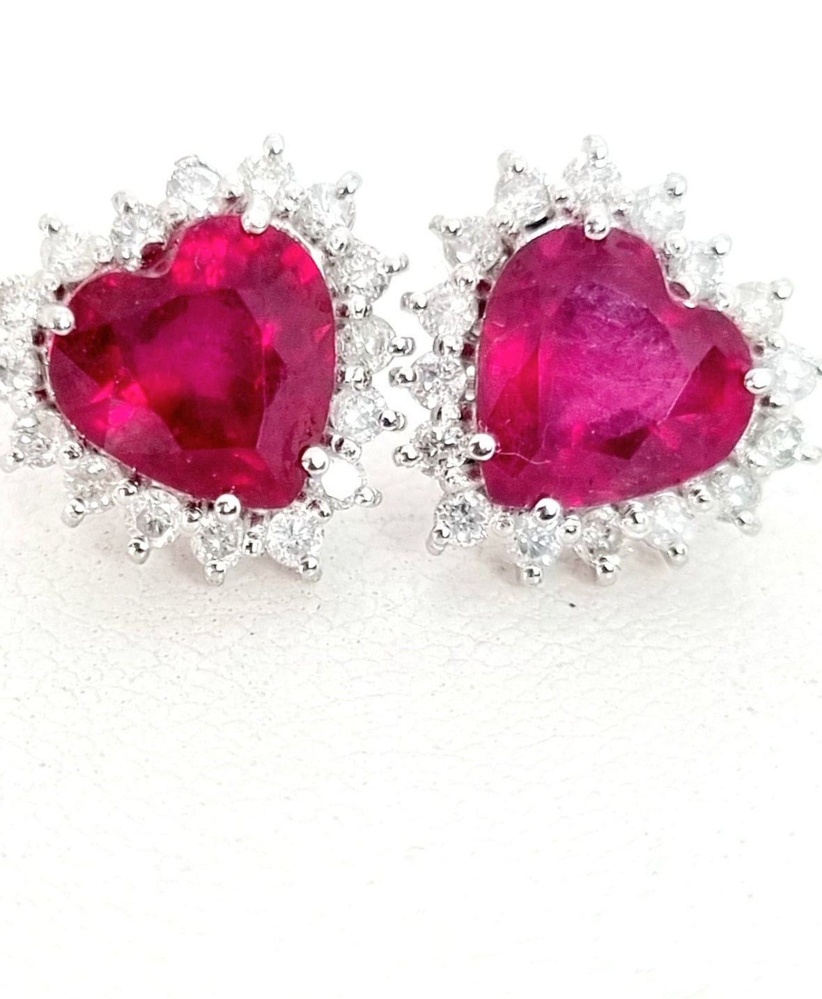 Orecchini - 18 carati Oro bianco Rubino - Diamante