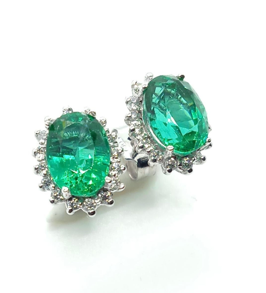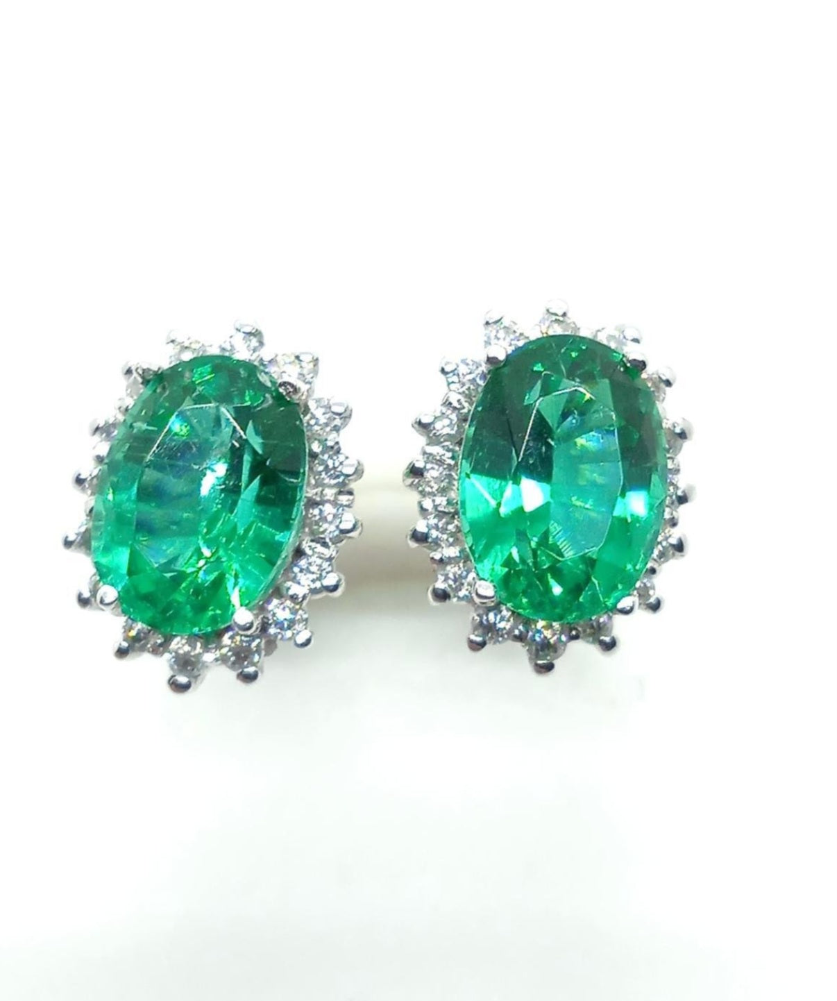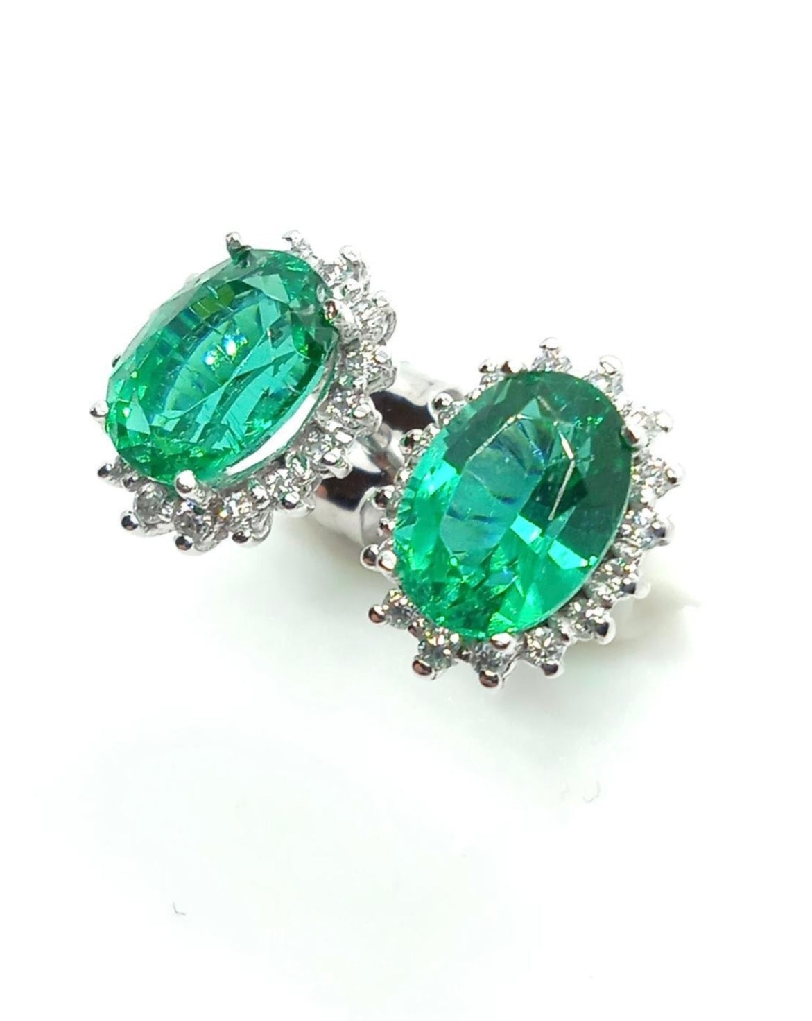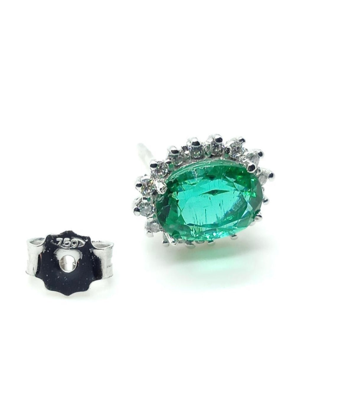 Al centro degli orecchini ci troviamo 2 Smeraldo naturale da 0.60 carati cadauno per una caratura stimata di 1.20 carati