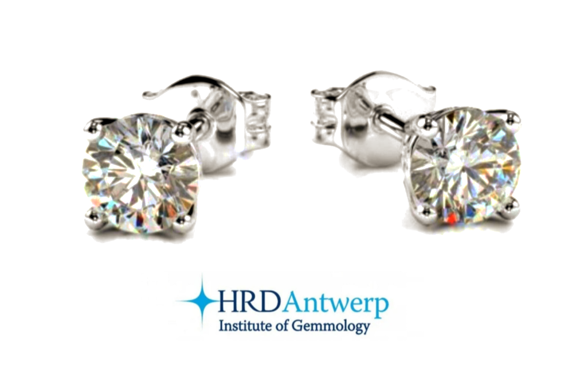 Orecchini punto luce certificato HRD in oro bianco 18k con 2 diamanti naturali 1,00 ct
