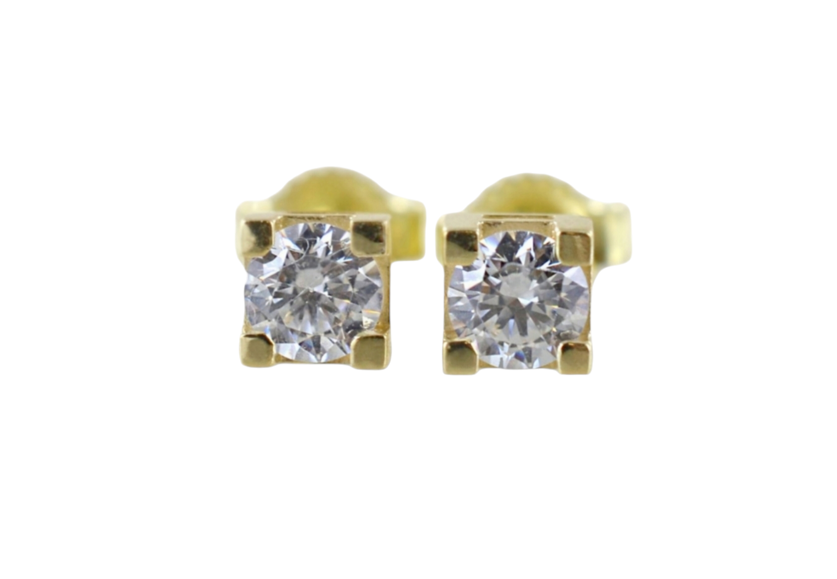 orecchini punto luce quadrato in oro giallo 18k e 2 diamante naturali 0,70 ct