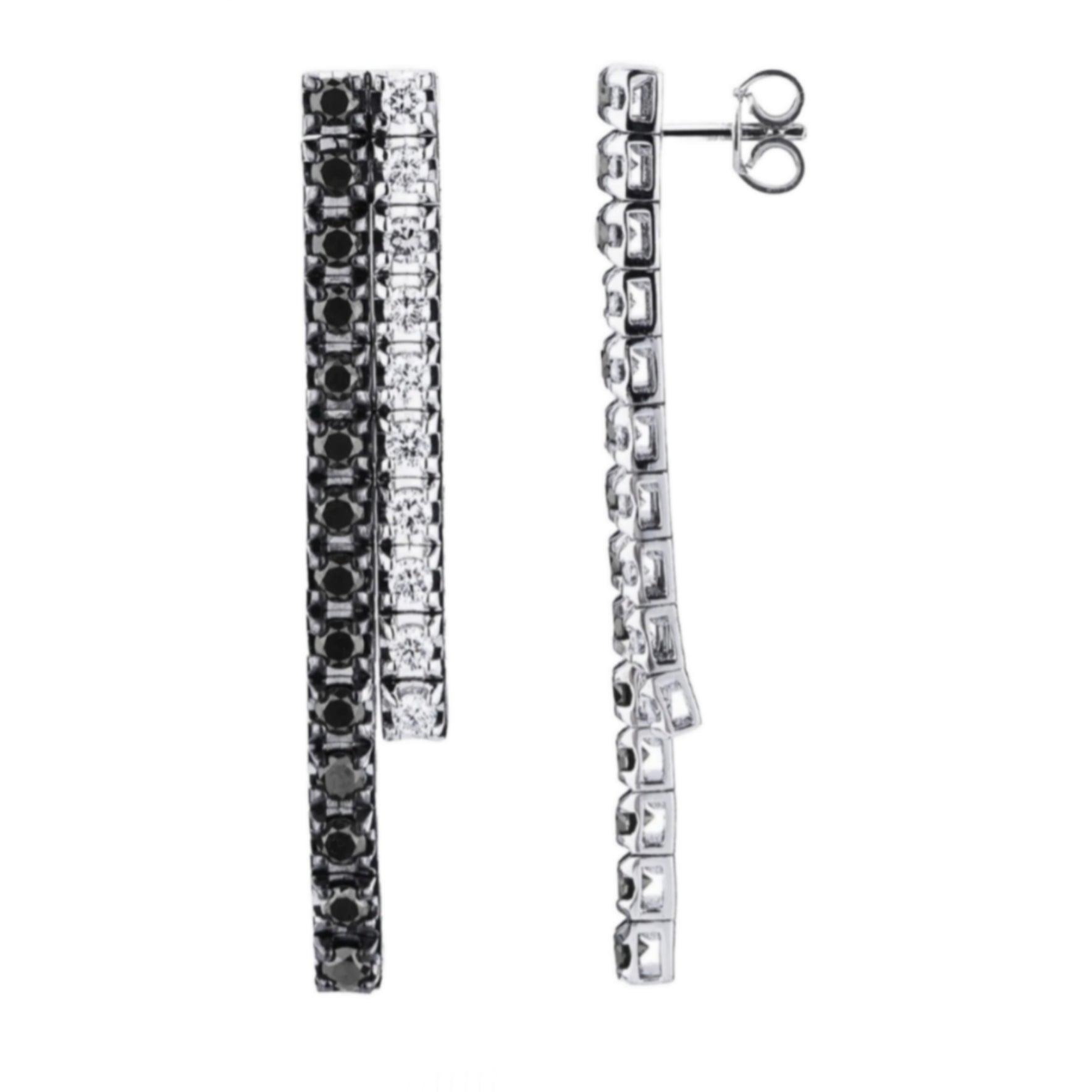 orecchini tennis in oro bianco e 2 fila diamanti naturali neri e bianchi 1,44ct