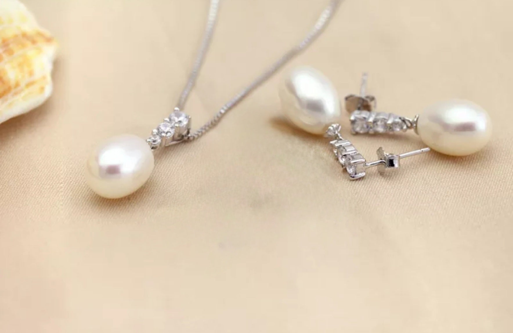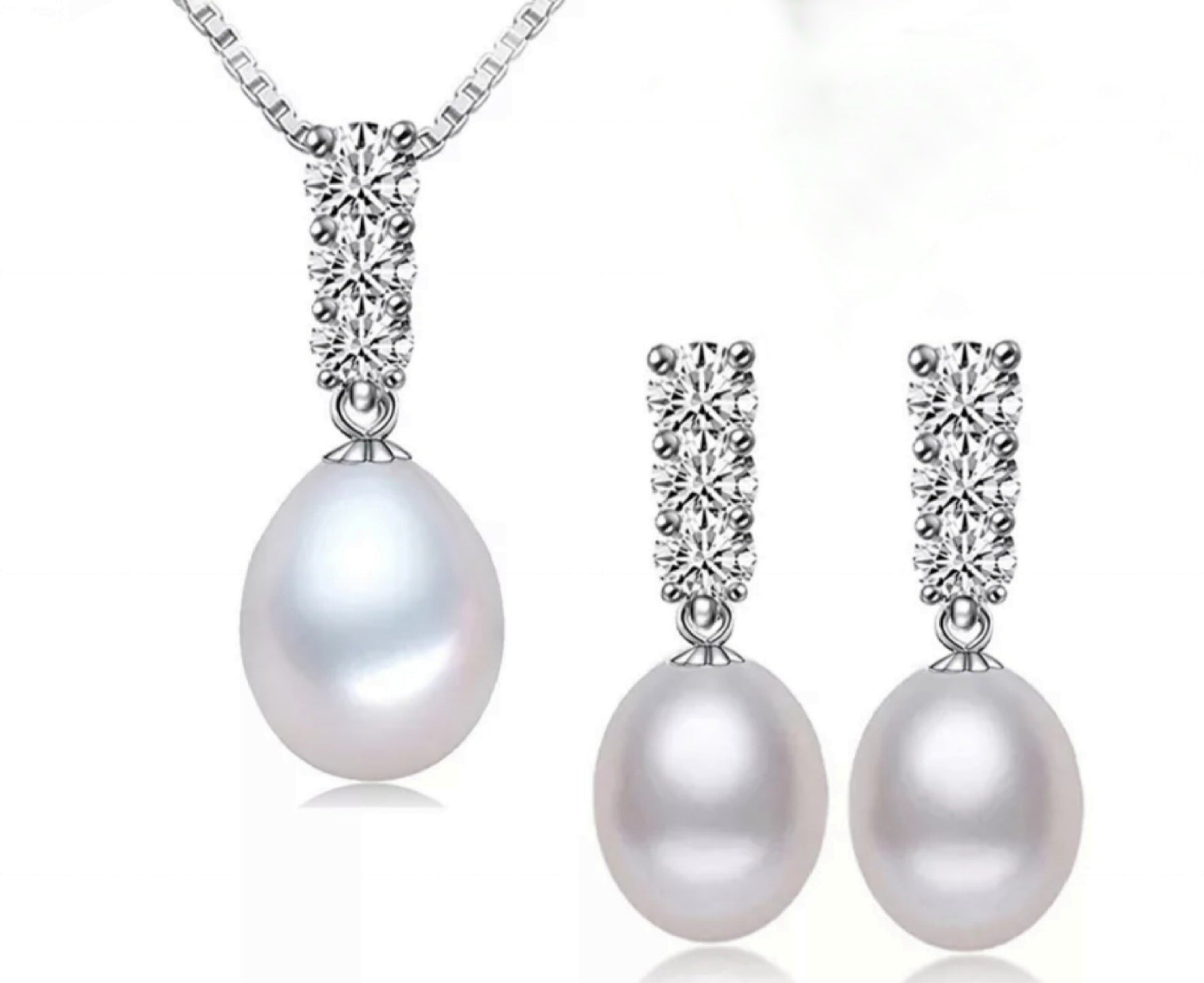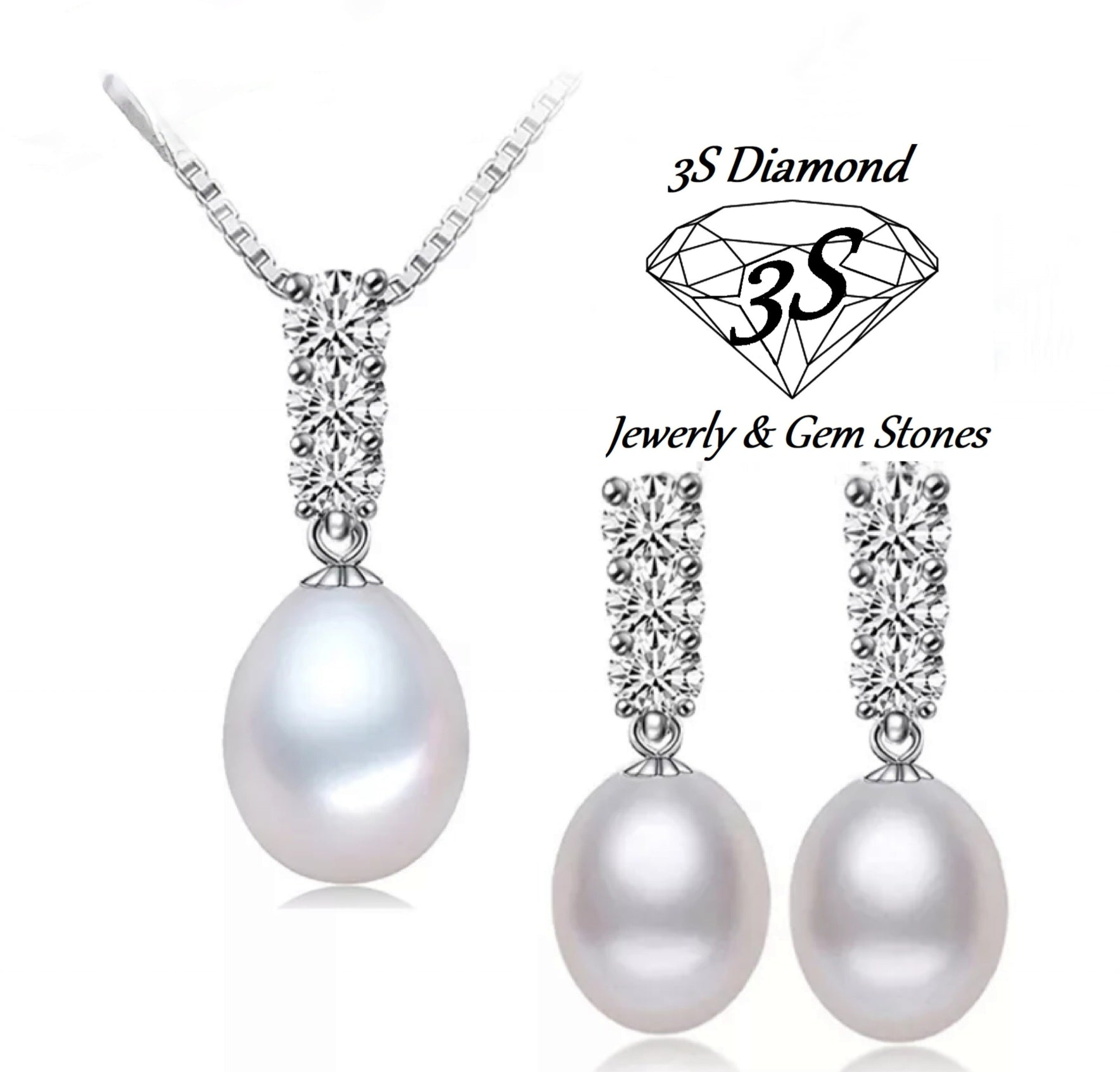 set completo trilogy collana e orecchini con perla naturale bianca diamante naturali 0,90ct Color E VVS1